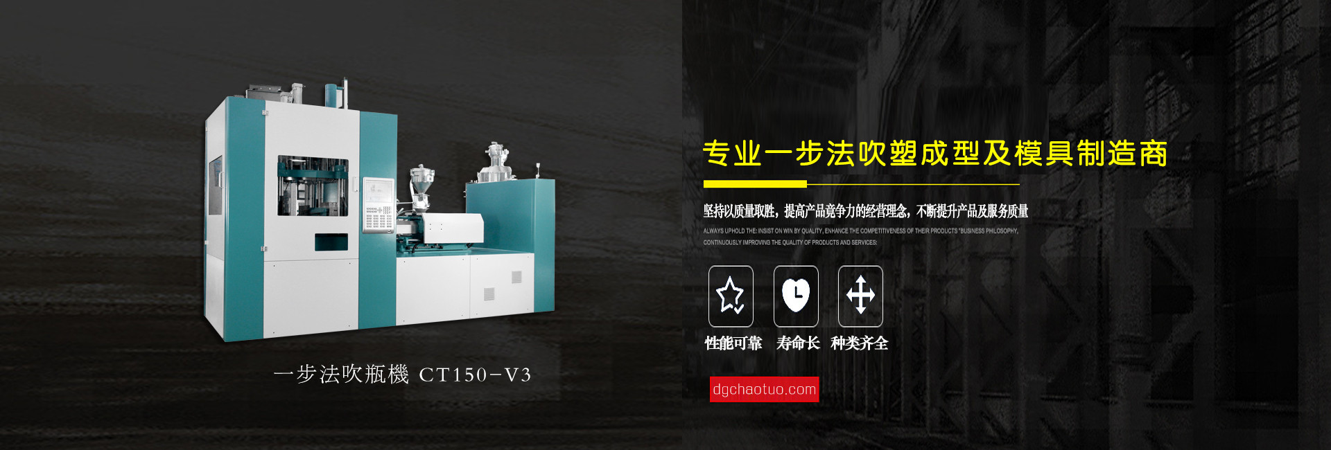 東莞超拓機械有限公司是一家專業(yè)設(shè)計生產(chǎn)一步法注吹機及相關(guān)配套模具的制造企業(yè), 公司自成立至今,始終以市場為導向、科技為基礎(chǔ)、質(zhì)量第一、用戶至上為服務宗旨,并一直在跟進和學習世界上先進的“注拉吹”中空成型技術(shù)專業(yè)領(lǐng)域配件制造和檢驗技術(shù),不斷地創(chuàng)新求異,其中PPSU奶瓶領(lǐng)先國內(nèi)同行業(yè),堅持“超越拓展,品質(zhì)保證”的企業(yè)文化理念,為客戶提供上乘服務。公司總經(jīng)理姜業(yè)東攜全體員工衷心感謝新老客戶的支持和關(guān)愛,竭誠歡迎各位朋友蒞臨指導與合作,共圖發(fā)展。